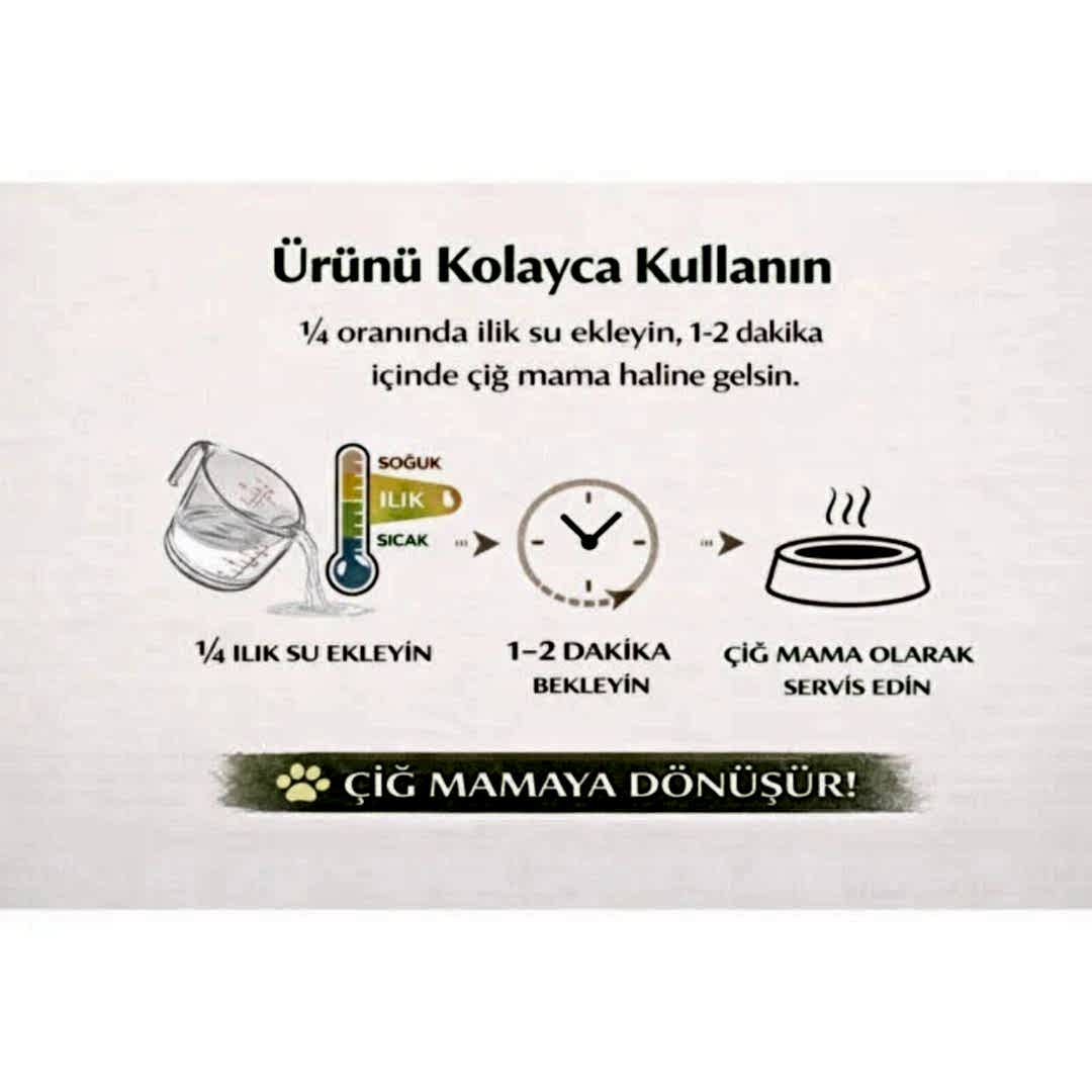 %95 et ve organ + %5 meyve ve sebze ile üretilmiştir.