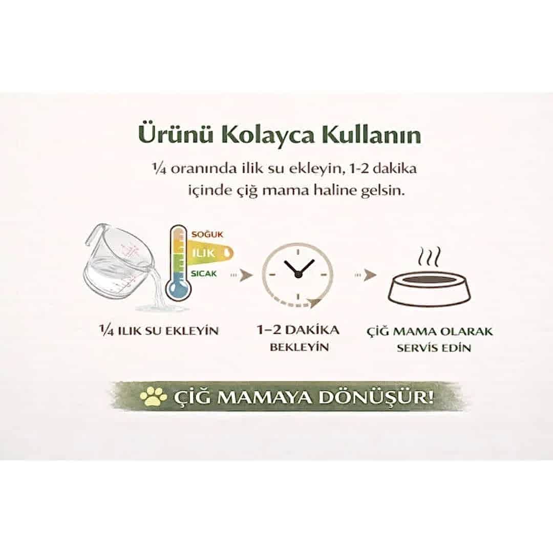 %95 et ve organ + %5 meyve ve sebze ile üretilmiştir.
